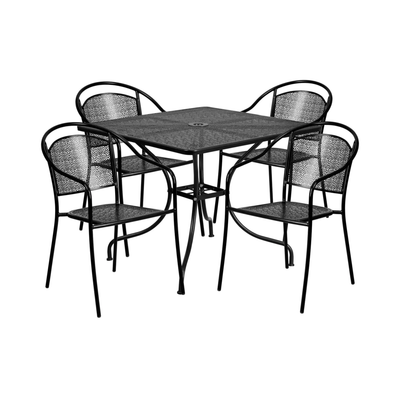 Oia Commercial Grade 35.5" Square Indoor-Outdoor Steel Patio Table with Umbrella HoleSky Blue