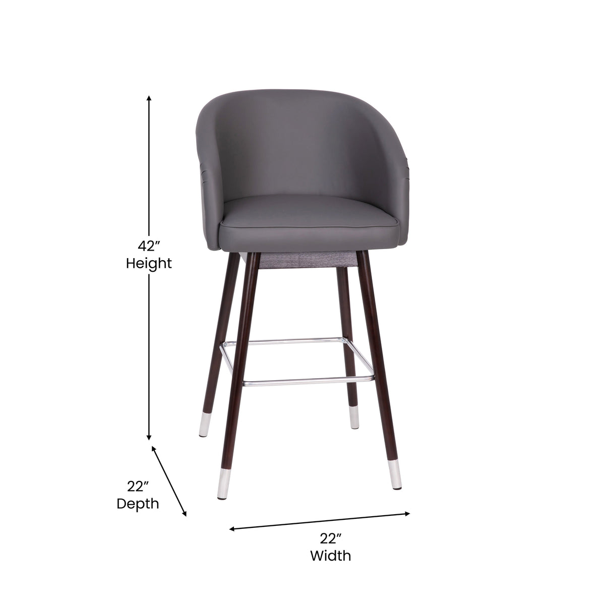 Bring your home or business into the 21st century with the modern trendy style of this commercial grade stool available in bar and counter heights. Covered in soft and durable upholstery and boasting accents on the legs and footrest, the minimalist style of this barstool is sure to be an asset in any decor. The contoured back, integrated arms, and high density foam padding give your guests the ultimate place to relax and unwind.