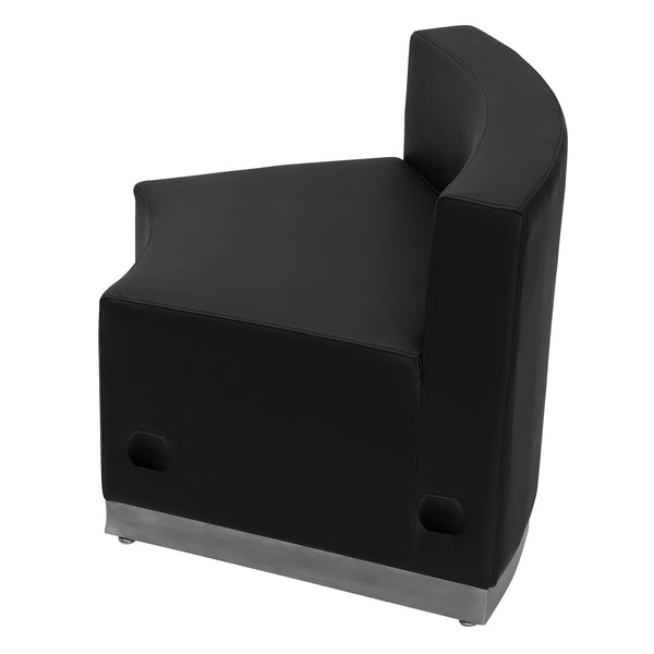 Moving your furniture around is a quick and easy way to change up the look and feel of your space so modular pieces like this upholstered concave chair are a must have. LeatherSoft is leather and polyurethane for added softness and durability. This modern chair gives an upscale, sophisticated look to any space and can be used in conjunction with other pieces or as a standalone. The armless design gives the illusion of space and creates an airy feel even in a small room. Supported by a brushed stainless steel base, this piece is durable and will withstand years of use. Adjustable floor glides ensure a level seating surface while the locking bolt connects this piece to chairs in this collection. As your business grows, you can add on more pieces and reconfigure your design. This innovative contemporary chair will bring comfort and trend-setting style to your waiting room, reception area or lounge.